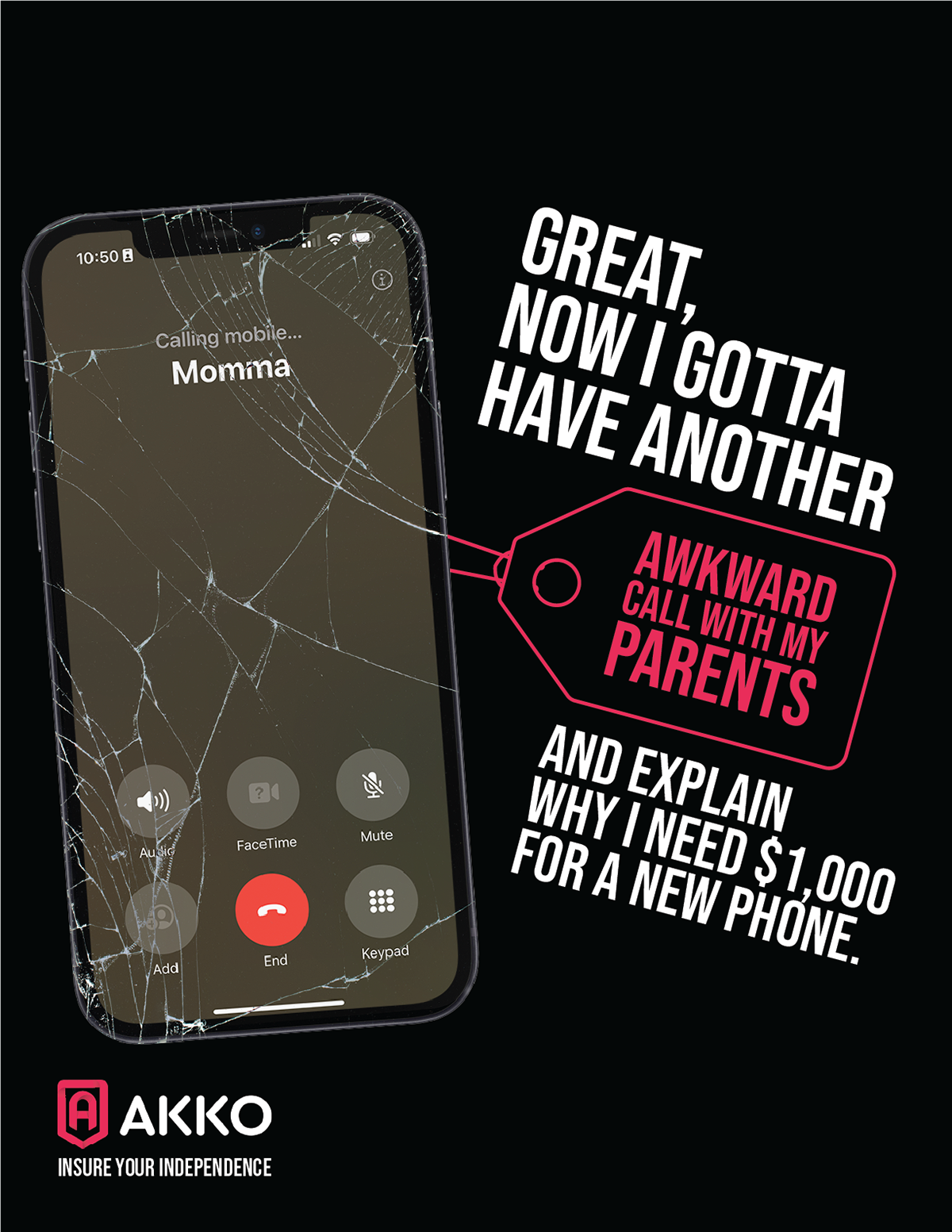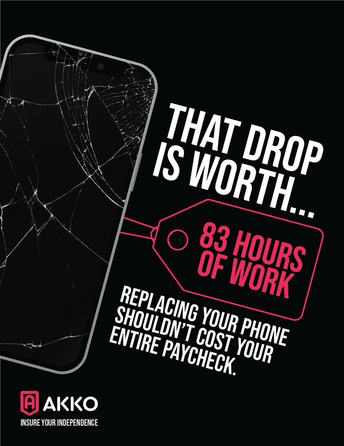 Show the true impact of a phone accident and frame AKKO as protection for independence, not just a device.